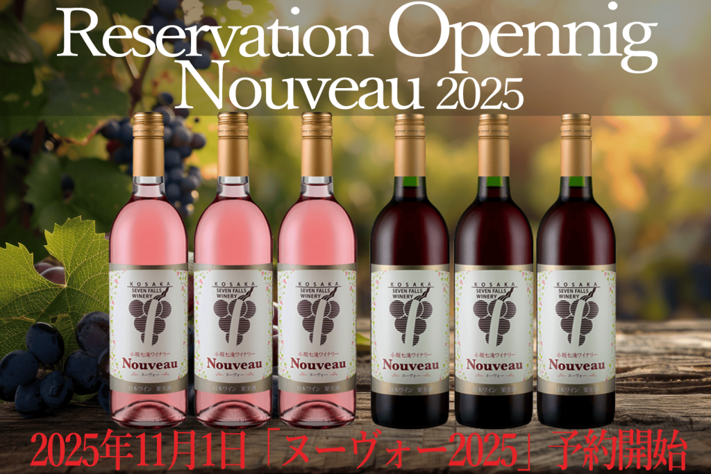 秋の訪れとともに、小坂七滝ワイナリーから「ヌーヴォー2025」の予約がスタート。夏場の降水量が少なかったことで糖度と酸味のバランスが良いぶどうが収穫できました。さらに今年は果皮ごと発酵させる“果皮仕込み”で醸造し、軽やかな果実味の中に深みと余韻をまとわせました。グラスに注げば、淡く輝くルビー色。やや甘口で華やかな香りが広がり、ワイングランド特有の酸味が心地よく響きます。従来のMC製法からの進化により、食事にも合わせやすく、チーズやグリル料理との相性も抜群。ロゼ&ルージュのセットでお届けする、今年だけの特別な味わいです。開栓の瞬間、秋が香り立つ―。その一滴が、季節を彩ります。