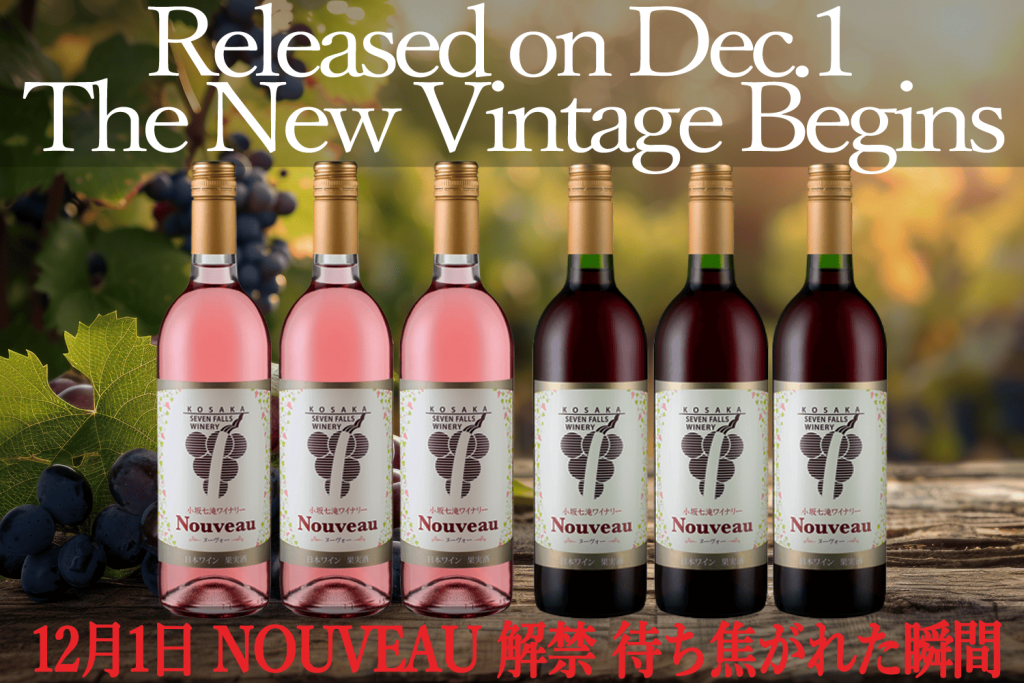 12月の冷たい空気に灯りがともり始める頃、小坂七滝ワイナリーの新酒がついに解禁。今年のヌーヴォーがあなたの冬を彩り、年の締めくくりにふさわしい一杯を届けます