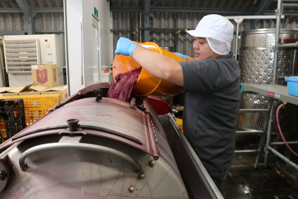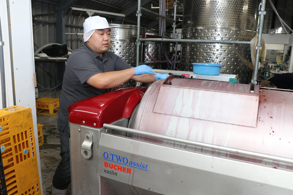 こうした仕込みを支えているのが、日々メンテナンスを欠かさない仕込み機械です。収穫が始まる前に隅々まで清掃し、部品を点検し、故障や不具合がないかを確認します。機械を常に清潔に保つことは、発酵の妨げを防ぐだけでなく、ワインの仕上がりに直結します。小さな汚れや異物混入が、香りや味わいを大きく左右してしまうためです。仕込みの現場では、畑と同じくらいの緊張感と丁寧さが求められます。