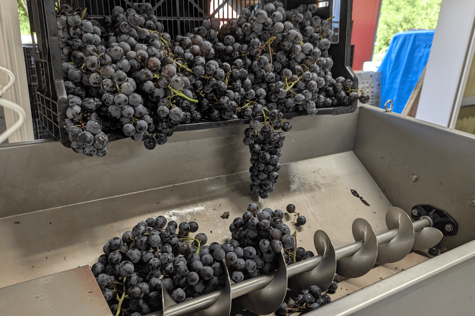 使用するのは、小坂町で育まれた山ぶどう系品種「ワイングランド2025」。夏場の降水量が少なかったことで糖度と酸味のバランスが良いぶどうが収穫できました。