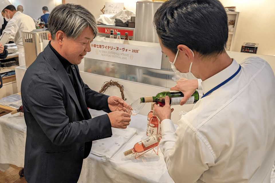 12月1日、小坂七滝ワイナリーでは、この日解禁となった「ヌーヴォー2025」を祝うイベント「ヌーヴォーフェスティバル2025」を開催しました。今年収穫された山ぶどう系品種「ワイングランド」で仕込んだフレッシュな新酒を、いち早く味わえる特別な機会です。