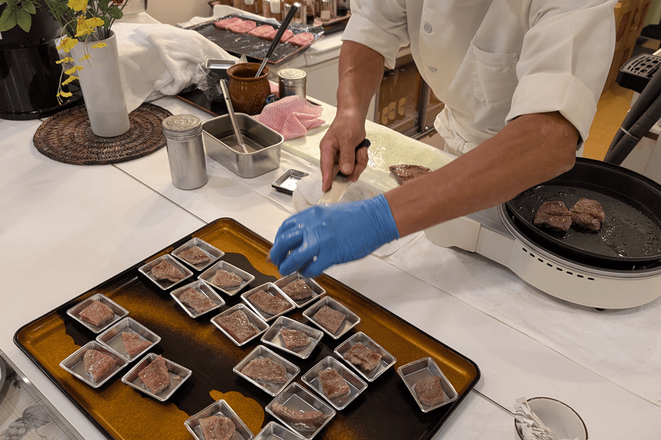 特に、ワイナリーレストハウス「青銅館」江刺家料理長によるビーフステーキのライブキッチンは多くの注目を集め、焼きたての香りが会場に広がるたび、参加者の会話や表情にも自然と笑顔が生まれていました。